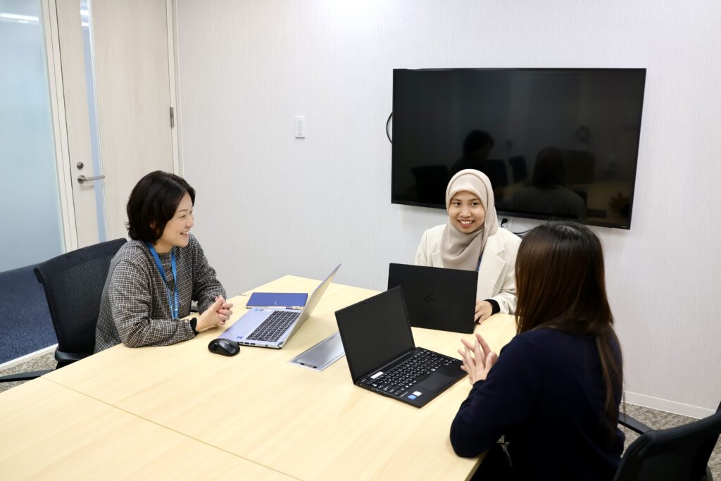 Sさん:クリエアナブキに入社して一番良かったのは、私がイスラム教でヒジャブを被ったり、お祈りをしたりすることを認めてくれたことです。お祈りのために会議室も使わせてくれました。ヒジャブもお祈りもダメな企業はありますから、本当にありがたかったです。