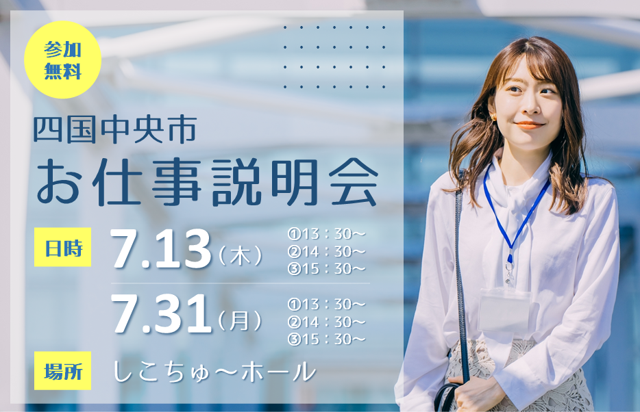 【四国中央市】7/13・7/31無料お仕事説明会開催