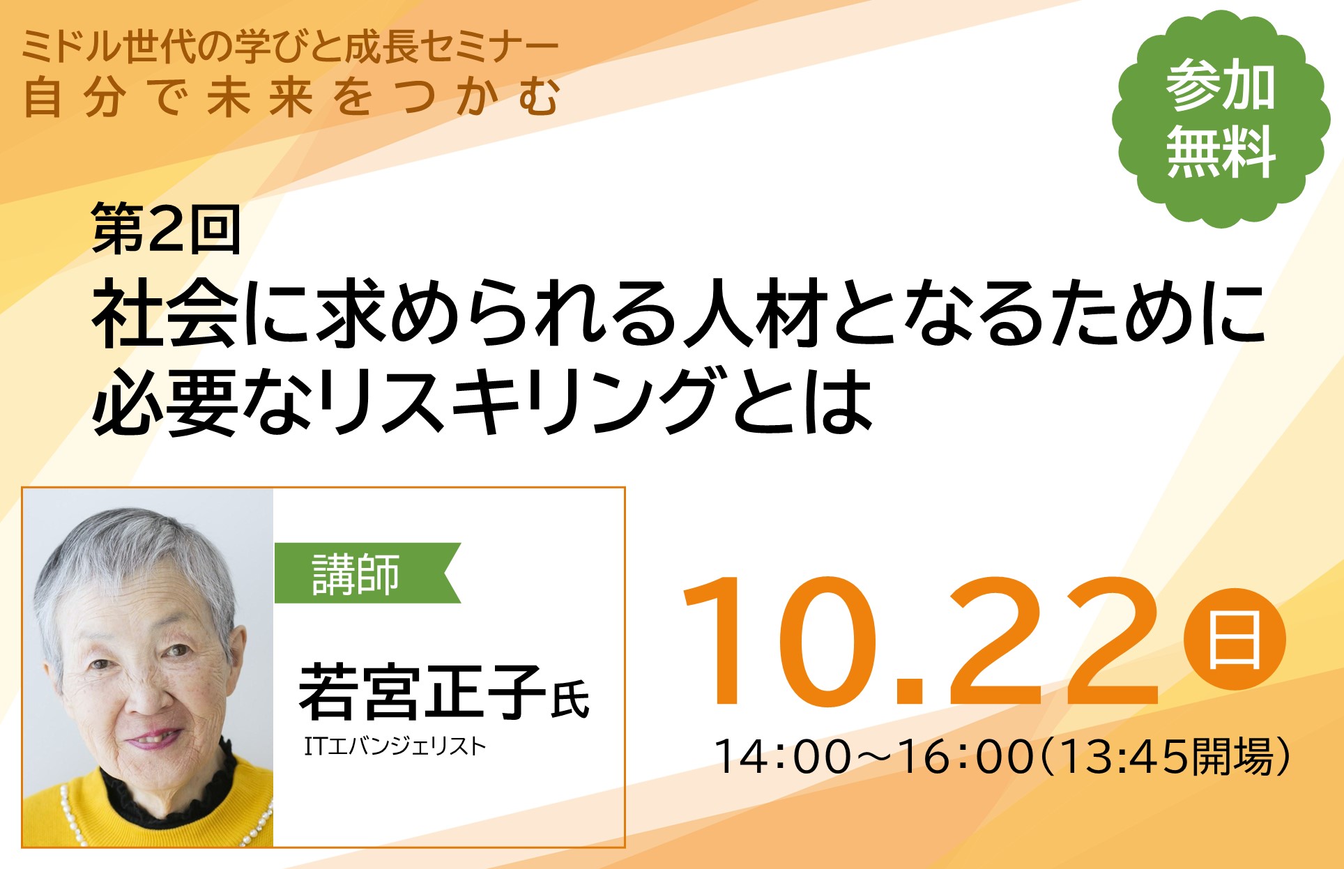 <無料セミナー>10/22(日)若宮正子さんが高松に!社会に求められる人材となるために必要なリスキリングとは