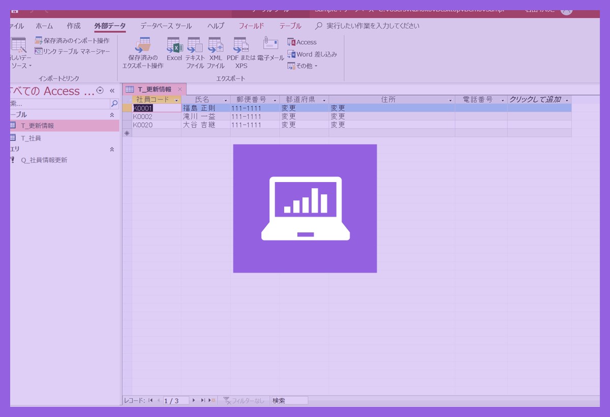 テーブルの内容をほかのテーブルの内容で更新する (Access)