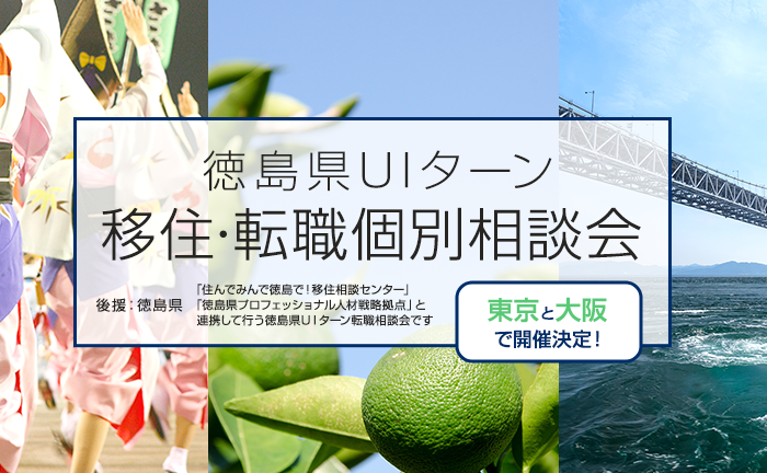【東京&大阪開催】徳島県後援UIターン個別転職相談会<対面・TEL・オンラインOK>