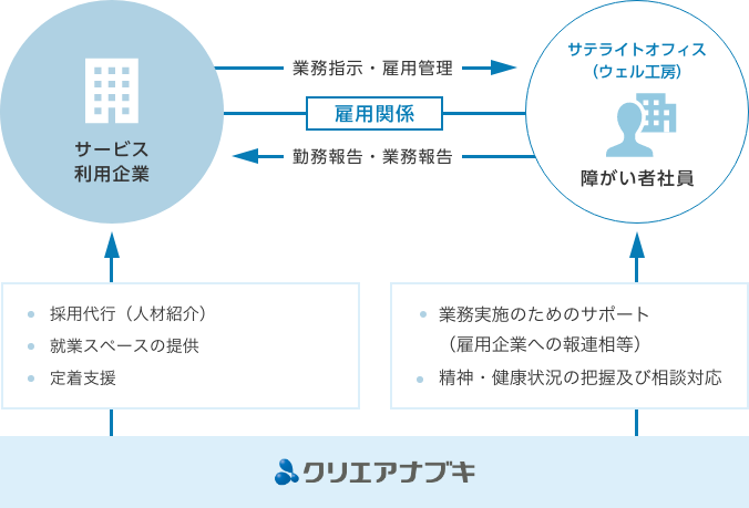 クリエアナブキは障がい者雇用を通して、企業の人的資本経営の実現と企業価値の向上、多くの方のウェルビーイングに寄与していきます。