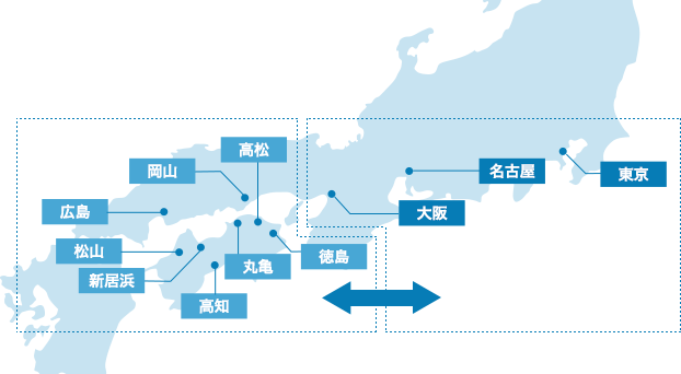 中国・四国の人材サービス企業で東京・名古屋・大阪にキャリアコンサルタント常駐オフィスを持つのはクリエアナブキだけです。