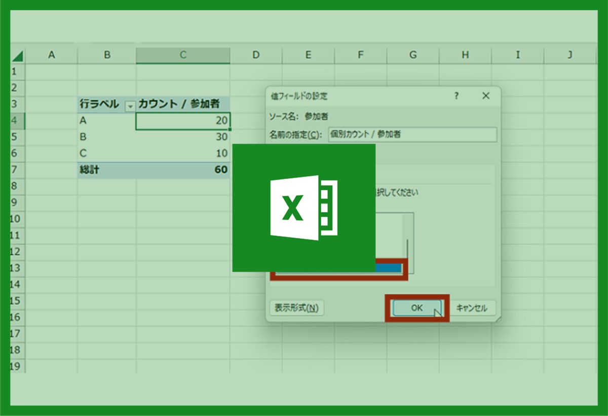 ピボットテーブルで重複を除外してユニーク カウントをする